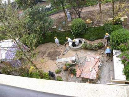 2、當以上基本工作做好以后,公司便會派遣工人挖鋪裝基礎土方的位置,并且與此同時開始調拌水泥沙漿,進行人工的粘貼鋪裝面磚,一些有實力的大型公司還時進行磚砌墻體和木質品的安裝,以便在短的時間內完成這個步驟的進行,使客戶更快的看到花園的效果。