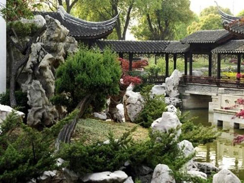粉墻黛瓦、亭臺樓閣、假山、流水、曲徑、梅蘭竹菊等。特點:渾然天成,幽遠空靈;在造園手法上,中國傳統園林“崇尚自然,師法自然”,講求“雖由人造,宛如天開”,在有限的空間范圍內利用有效的自然條件,模擬大自然中的美景。